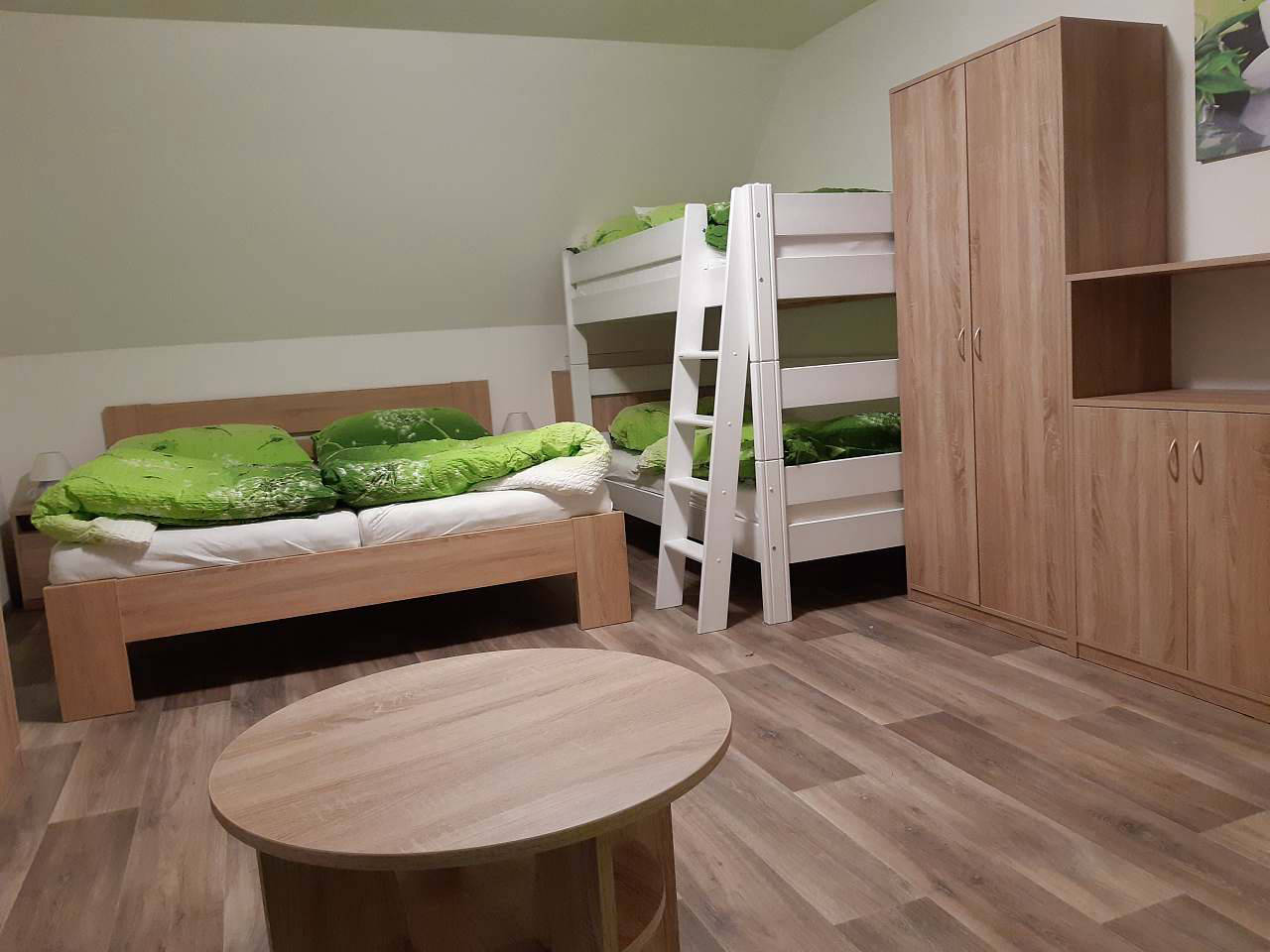 Pro maximální pohodlí je chalupa vybavena elektrickými přímotopnými tělesy s vlastním termostatem pro každé patro a zvlášť pak pro společenskou místnost v prvním patře, která je vytápěna stropními sálavými panely.
